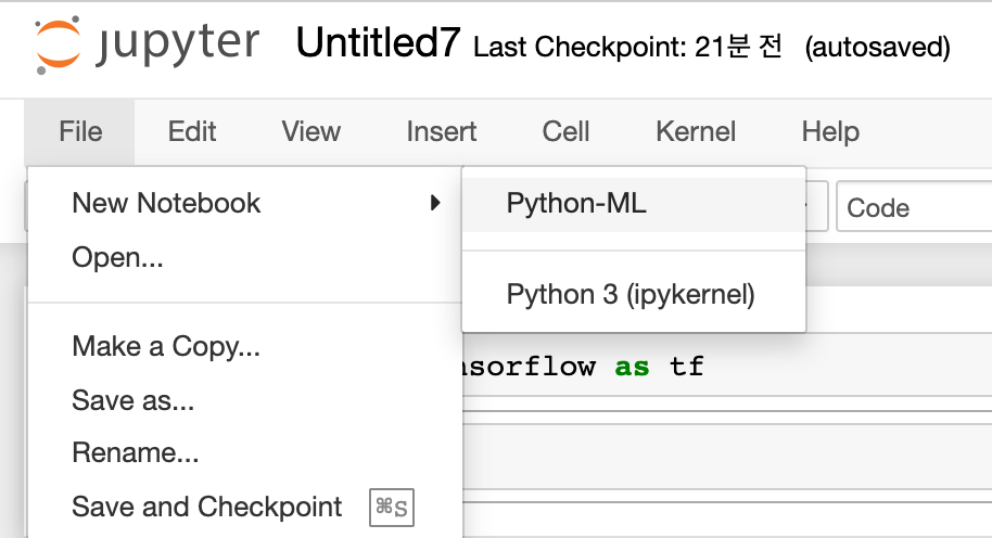 (ML) $ python -m ipykernel install --user --name ML --display-name "Python-ML"