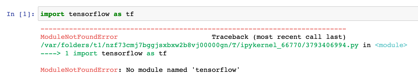 이렇게 설치하고 jupyter notebook을 실행하면 tensorflow 관련 라이브러리들이 죄다 없다고 나옵니다.