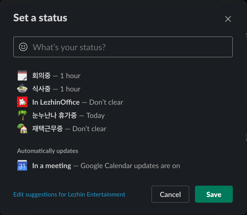 참고 - slack.com/intl/en-kr/slack-tips/sync-your-slack-status-with-your-calendar
