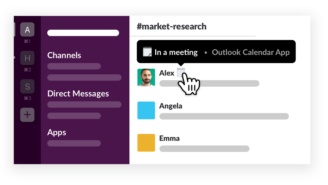 상태 변경은 내가 어떤 상태라서 바로 응답을 할 수 없거나 가능한 상황인지를 알려주는 것입니다. 잦은 회의를 진행하고 있다면, 캘린더와 상태를 동기화시키는 일은 요원할 것입니다.