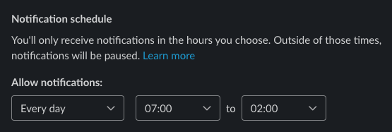아무튼, 이런 Notification을 메신저의 특성상 다른 App들보다 현저히 많이 전달받는다. 그래서 보통 메신저는 Notification 기능의 On/Off 기능을 제공하며, 채팅방 단위의 On/Off 기능까지 제공하는 것이 일반적이다. 여기에 Slack은 조금 더 다양한 설정이 가능하며, 이것을 잘 활용하면 Notification의 공해 속에서 해방될 수 있다.