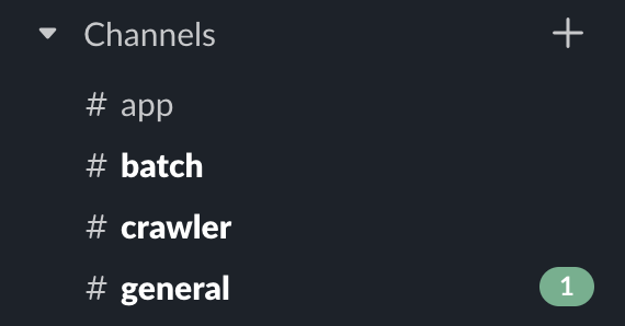 Slack 사이드바에는 대화 목록이 구성되어 있으며, 보통 여기에 내가 속해 있지만 읽지 않은 채널들은 Bold로 채널이 굵게 표시가 되고, 나를 멘션 하거나 키워드가 포함된 새로운 메시지가 있는 경우는 그 개수만큼 숫자로 합산하여 배지로 보여줍니다.