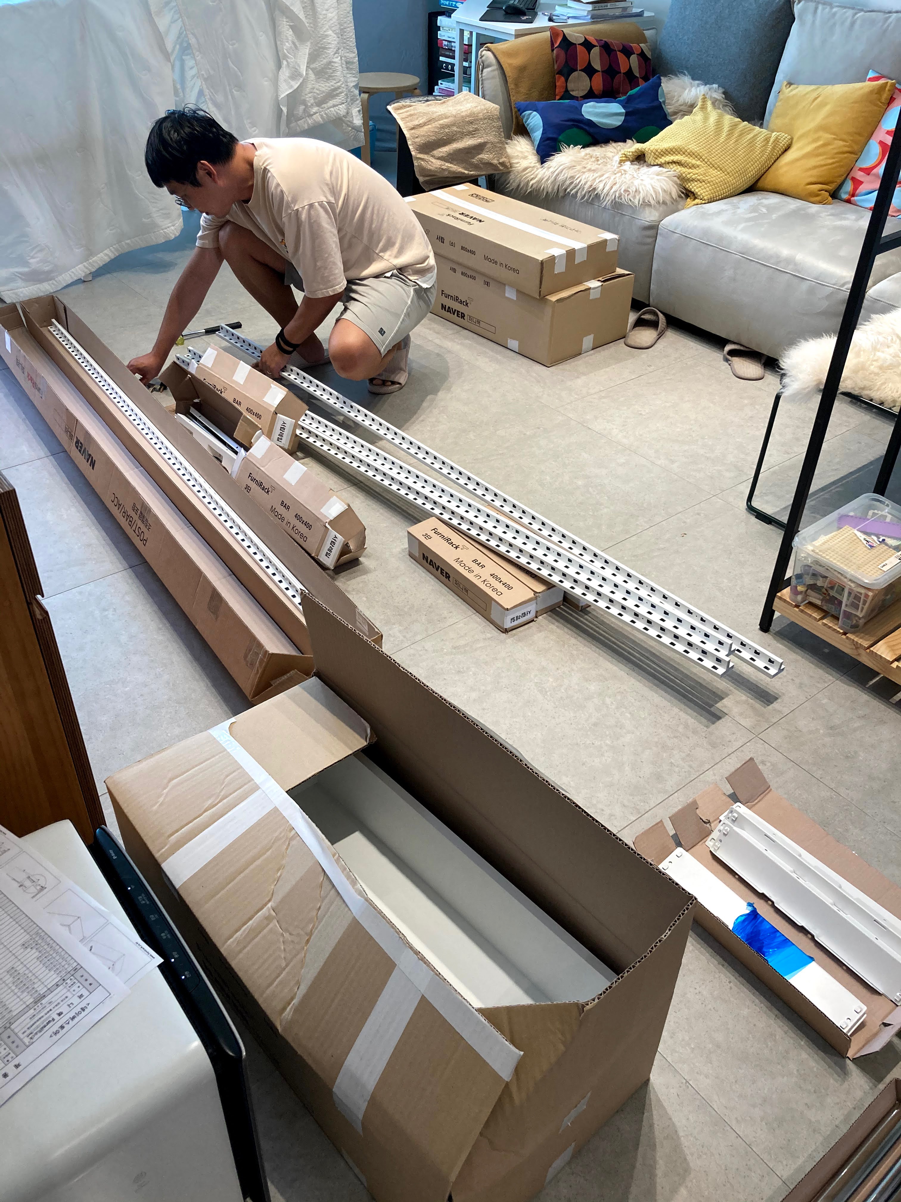나처럼 이렇게 많이(?) 주문한 사람도 조금은 있을듯한데, (포장의 편의상) 부속들은 다 한 군데 합쳐져서 포장되어 있다 보니, 부속을 찾을 수 없어서 전화를 2차례 했었고, 그때마다 "모든 박스를 다 풀어서 확인해봐야 한다"라고 하시는 답변만 받았다. 하지만 좁은 집에 모든 걸 다 풀어헤쳐둘 수도 없는지라 포장에 대한 인덱스 정보를 어딘가 정리해서 전달해주는 센스가 있었으면 하는 아쉬움이 남았다.