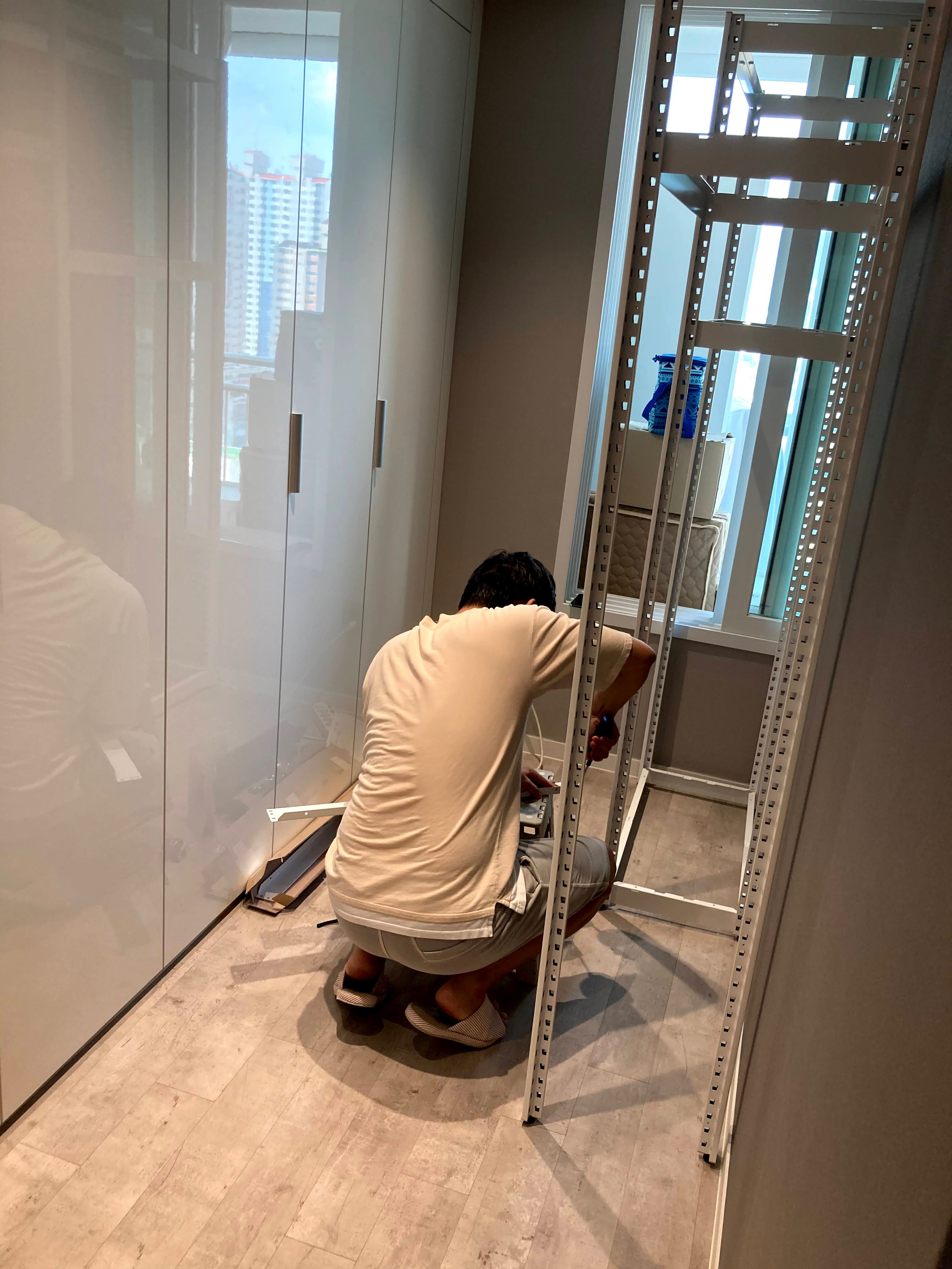 나중에 알았지만 사이트에 있는 조립 방법(furnirack.co.kr/install_1/)은 내가 했던 것(설명서)처럼 선반을 세워서 조립하는 것이 아닌 눕혀서 조립하도록 되어 있었다. ( 왜 못봤지 했더니 제가 구매한곳은 네이버 스마트 스토어이고, 공식사이트는 따로 있었고 그 공식사이트에 존재 했다. - Favicon을 보니 WordPress 로 만들어진 사이트인가 보다. 확인해보니 맞음.. ) 공간이 좁아서 그 설명서를 봤었어도 세워서 조립했을 것 같긴 하다.