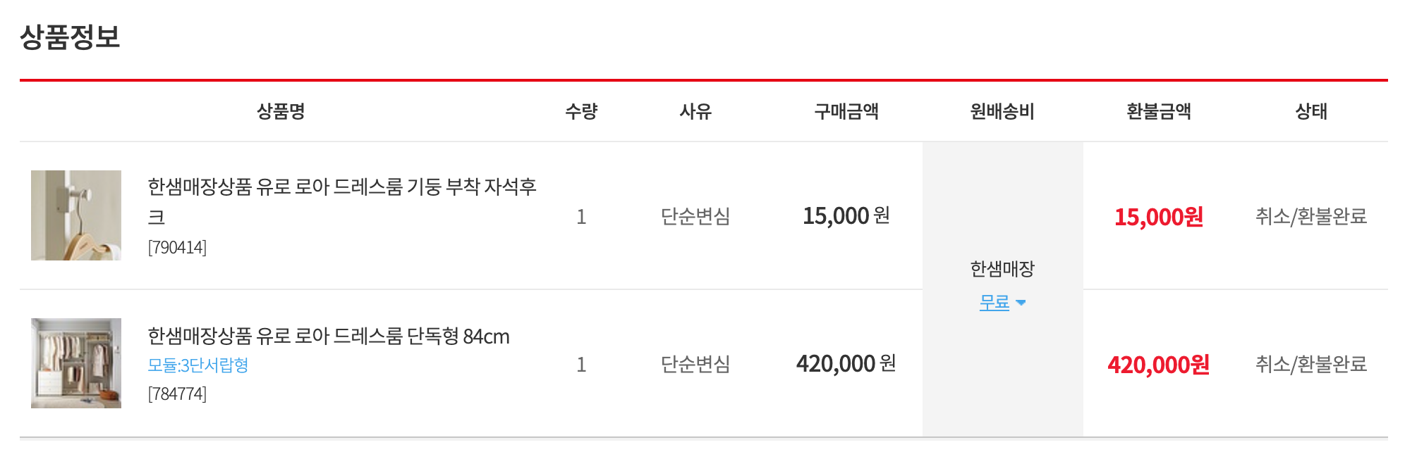 어차피 주문 제작이라 바로 처리되지는 않을 것이라 생각했었기에 큰 걱정은 하지 않았지만, 암튼.. 취소는 대기업답게 잘 처리되었다.