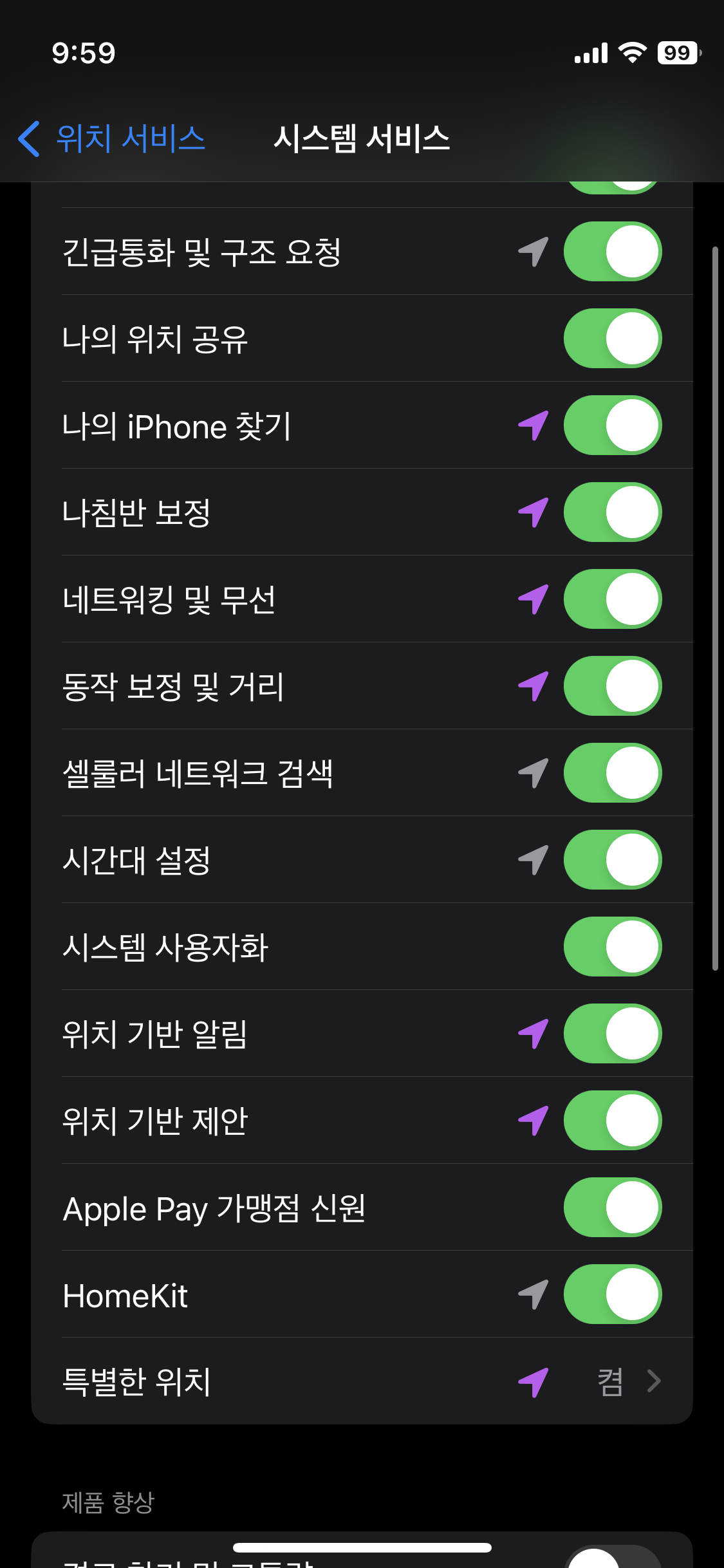 - iPhon 설정 > 개인정보 보호 및 보안 > 위치 서비스