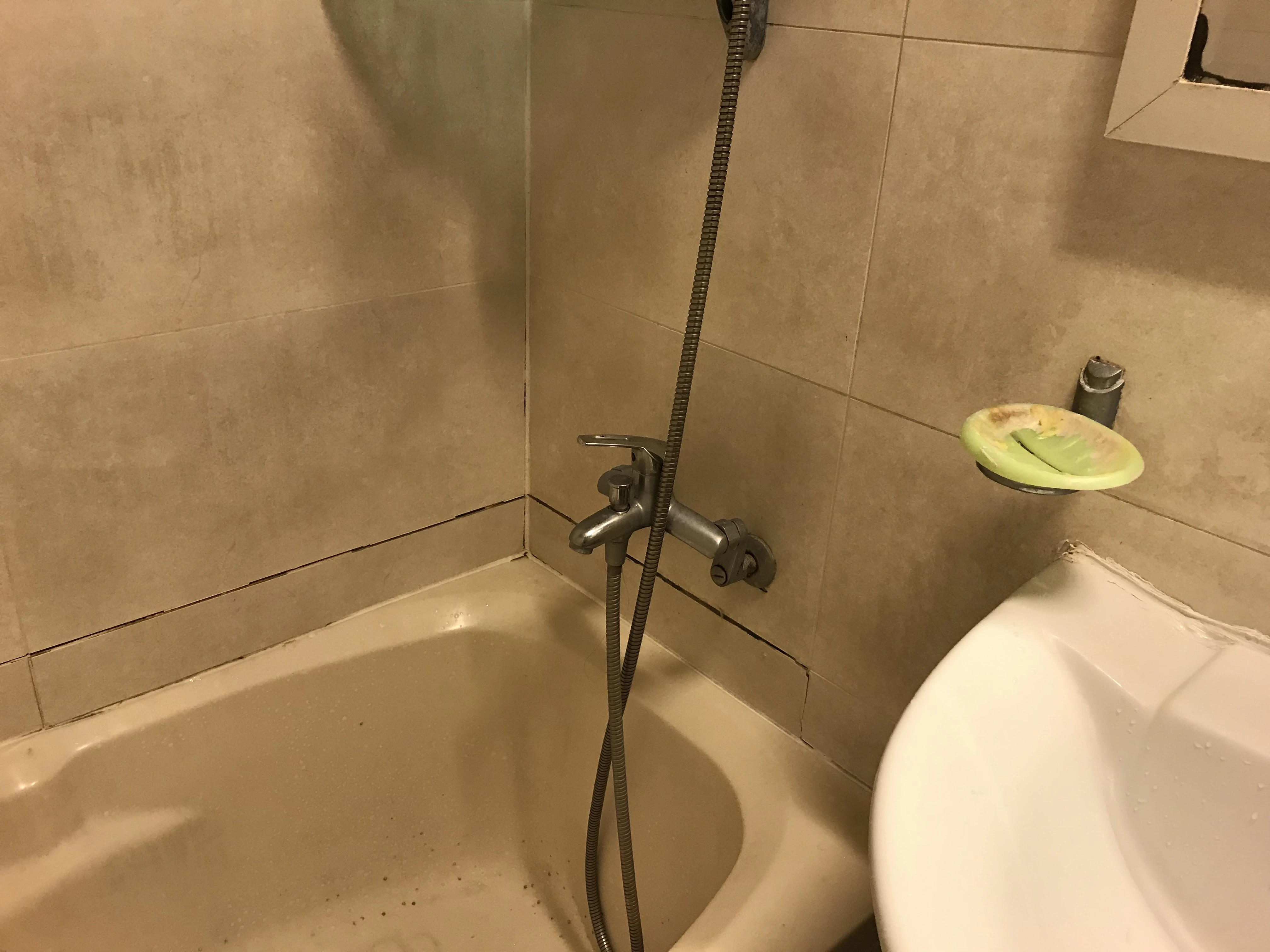 포세린 타일이라 상대적으로 덜 미끄럽지만, 물기나 비누거품이 있을 때는 정말 위험하다는 생각을 했었는데, 아니나 다를까 2년이 지난 이후에 아내가 미끄러져 약간 다치는 상황이 발생했습니다.