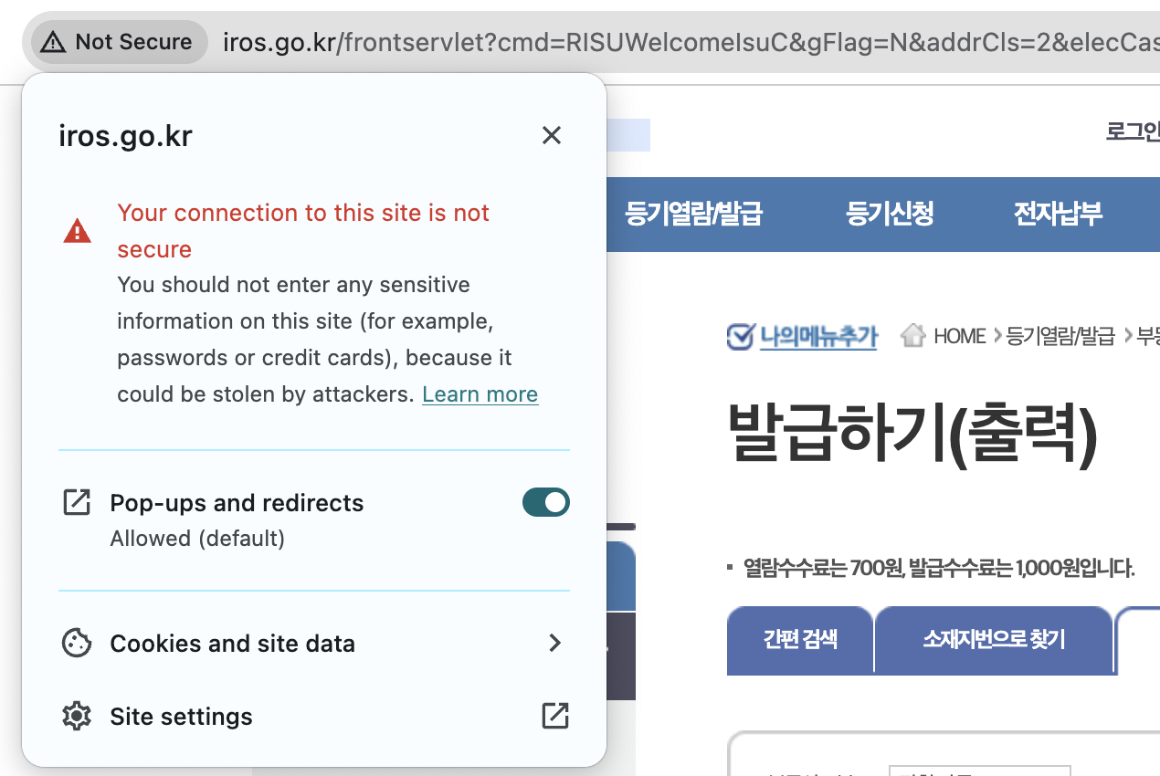 - 명색이 대한민국 법원 인터넷 등기소라고 되어 있는데