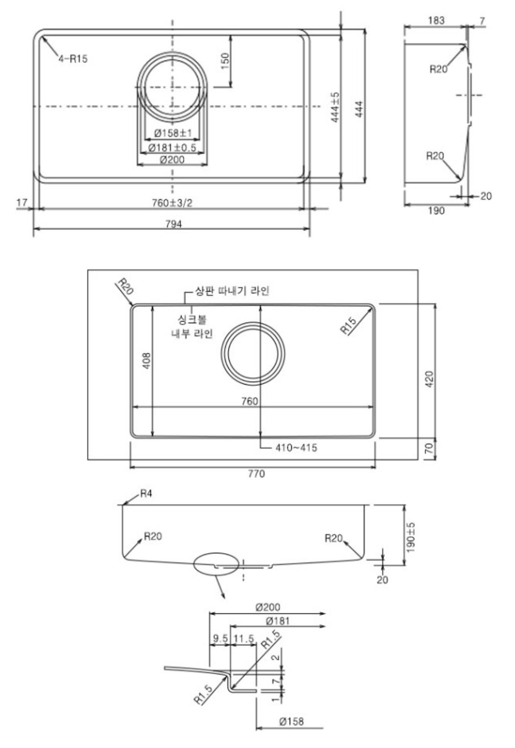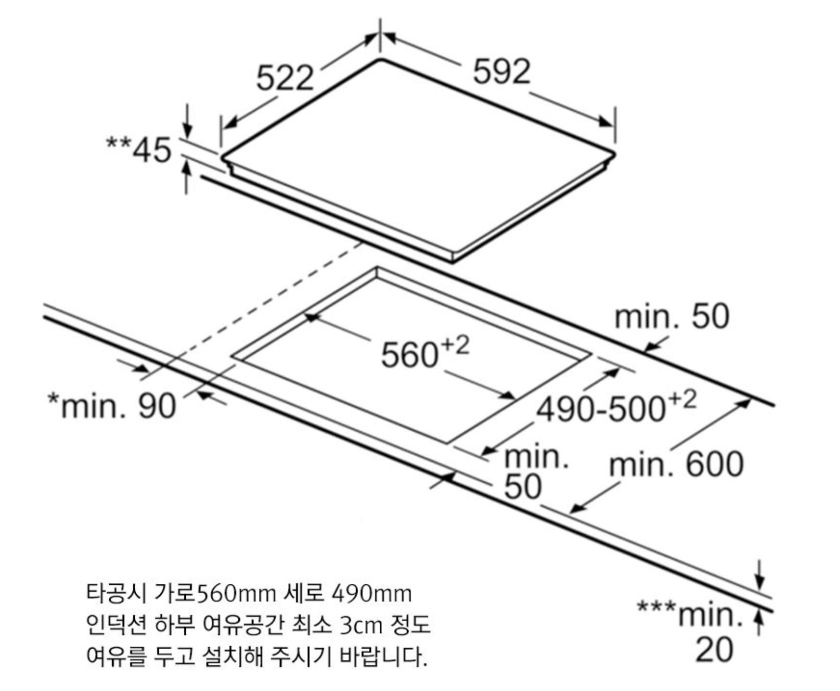- 싱크대 깊이는 600으로 맞춤