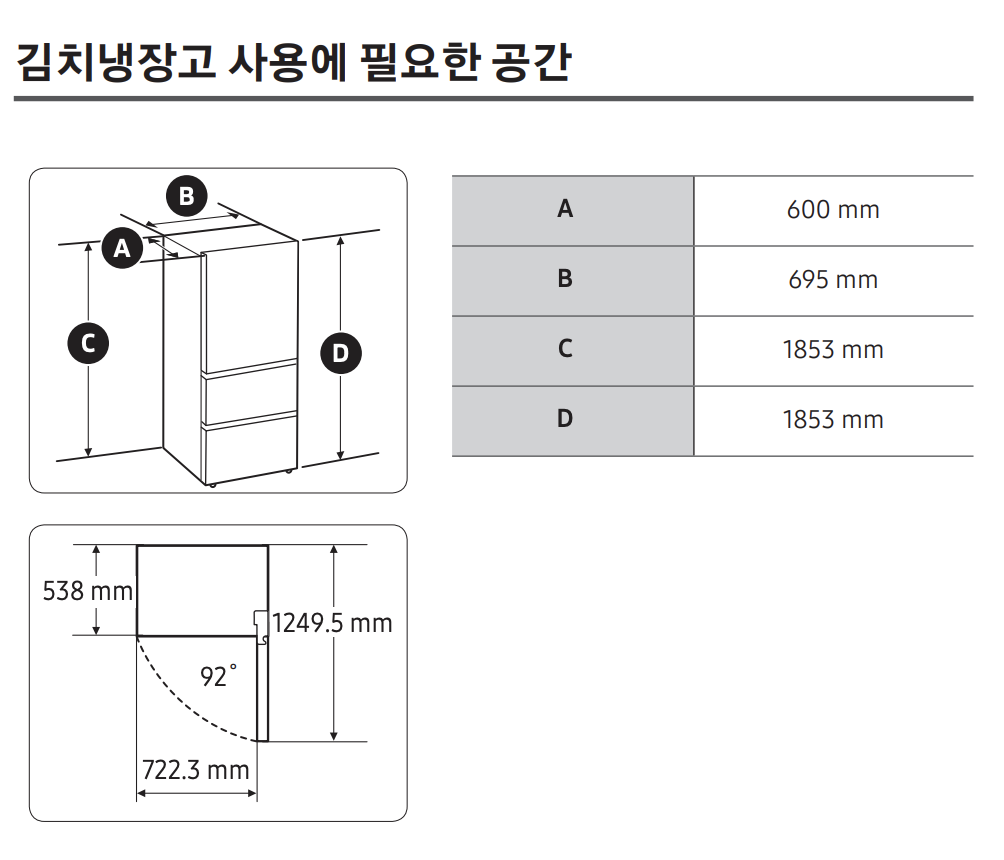 - W908 x H1853 x D698 - 냉장고 문짝 사이즈 체크